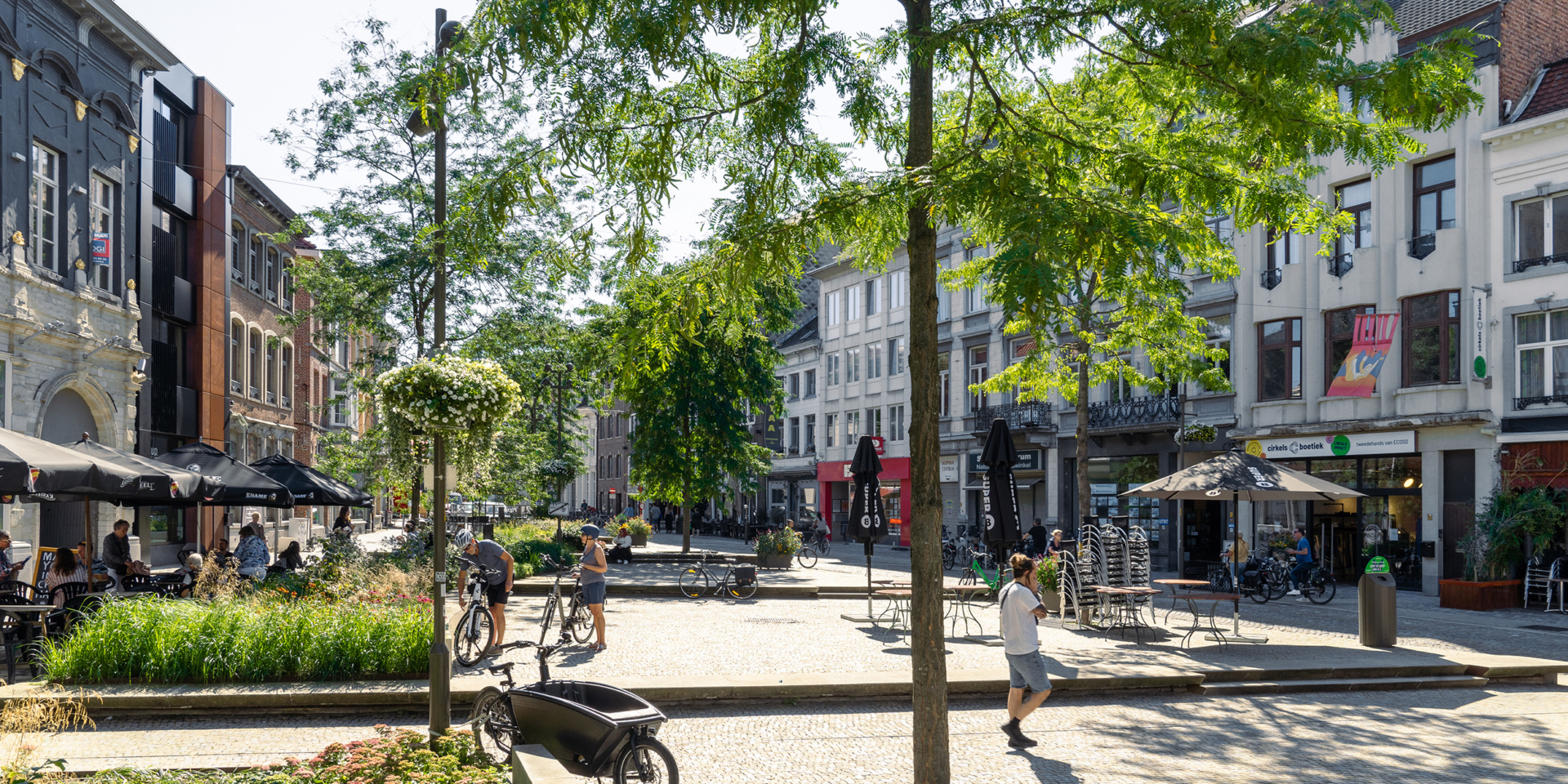De Onze Lieve Vrouwestraat is een van de meest prominente en karakteristieke winkelstraten van de stad. Tot voor kort was deze verbinding tussen het stationsgebied en het oudste deel van de stad, nabij de Korenmarkt, open voor autoverkeer. Met een nieuwe focus op voetgangers en fietsers ontstond de mogelijkheid om ook hier de principes van vergroening en duurzaamheid toe te passen. In het ontwerp is daarom veel ruimte gereserveerd voor aangename groene ontspanningsruimtes. Dit resulteert in een aanzienlijk aangenamere leefomgeving over de gehele straat met een lengte van 1,5 kilometer.
