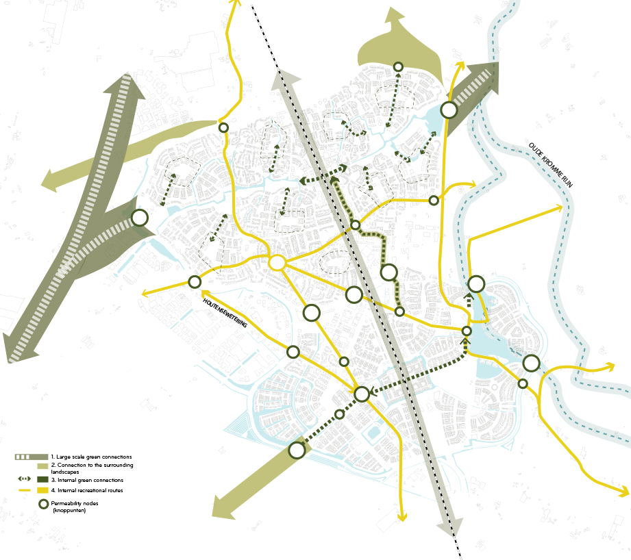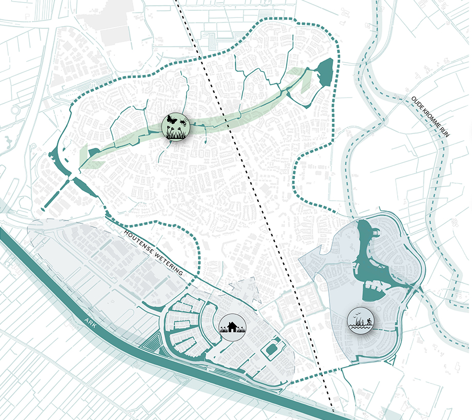 Bij OKRA pleiten wij voor landschapsgestuurde stedelijke verdichting als basis voor toekomstbestendige steden. Het zichtbaar maken en behouden van het oorspronkelijke landschappelijke raamwerk is niet alleen essentieel voor de ruimtelijke kwaliteit, maar ook voor klimaatbestendigheid en leefbaarheid. Dit principe gaf richting aan ons ontwerpproces en blijft centraal staan in onze visie op een duurzaam Houten.