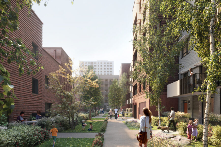Wij hebben de Wetstraat, waar het projectgebied zich bevindt, vormgegeven als een strategische groene corridor die leidt naar het Zoniënwoud aan de stadsrand